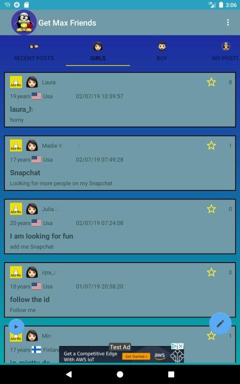 Dengan GetMaxFriends Anda dapat menemukan gadis-gadis snapchat lokal dan pengguna snapchat lokal.