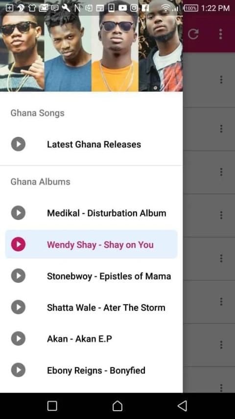 Get the best and latest of Ghanaian music from the comfort of your phone or device with Ghana Songs App. Install this application to enjoy the best songs in Ghana from the likes of Shatta Wale, Medikal, Stonebwoy, Kidi, King Promise, Kidi, Wendy Shay, , Stonebwoy, Kuami Eugene, Kwesi Arthur, Sarkodie, Kofi Mole, Mzvee and Samini among other Ghanaian musicians.