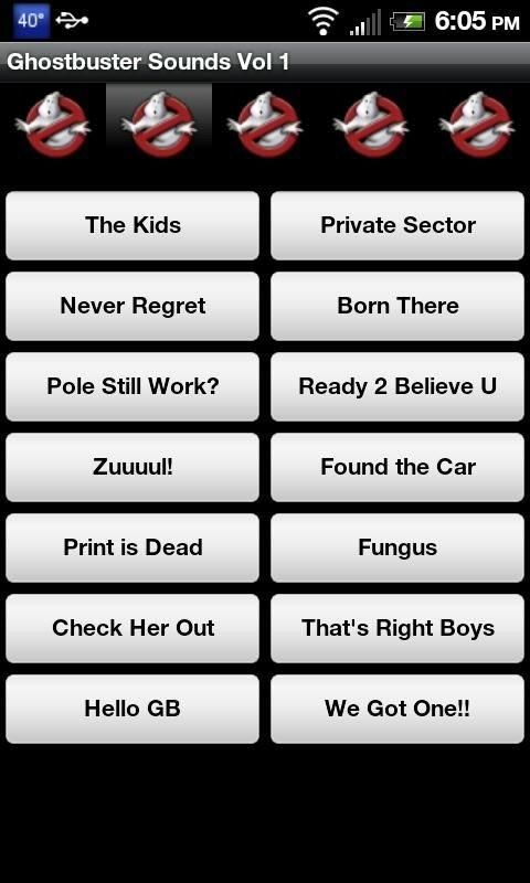 ***Check out the new title bar and menu! Play your favorite sounds bytes from the hit 1984 film Ghostbusters. This is Volume 1, covering the first movie. Please stay tuned for future updates and/or a new app covering Ghostbusters 2. Please also check out my other apps, Wilford Brimley Sounds and Ultimate Arnold Sounds! ✓Long click button to save to SDCard\stealthrabbi, set as ring tone and notification tone, and share sounds via Email! ✓Can Install to the SD Card, App2SD! ✓Switch Soundboard feature available through green button in title bar and menu. Easily switch between your favorite Stealth Rabbi Soundboards! ✓Favorites: Now you can choose your favorite sounds for your very own personal tab! Users of the Stealth Rabbi Pro Key can set unlimited favorites! Please contribute to the application development by purchasing the Stealth Rabbi Ad Key. ✓Pete Venkman ✓Ray Stantz ✓Egon Spengler ✓Winston Zeddmore ✓Janine Melnintz Weather, Task Manager, Comedy, Soundboard, game, fun, entertainment, movie Recent changes: v3.2: ✓Add Favorites Feature. Now you can choose your favorite sounds for your very own personal tab! v3.1: ✓Add Support for Stealth Rabbi Key to remove ads. See Ad Removal button on last sound tab. ✓Added Facebook and Twitter follow menu items. Click Menu! v3.0: ✓Added Switch Soundboard feature from title bar and menu. ✓Added "Get More Apps" menu item. v1.4.2: ✓Long Click Option - Save to SD only ✓Volume buttons control Media Volume always.