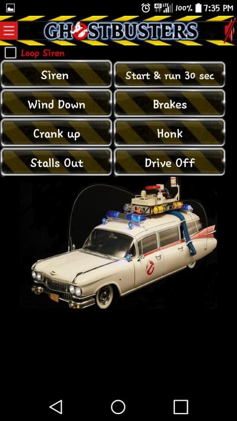 Play sounds from Ecto-1, P.K.E. Meter, Proton Pack, Slime Blower, Ghost trap and more!