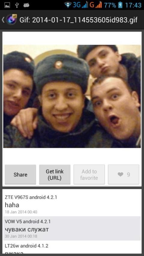 Gif pencipta - salah satu aplikasi yang paling kuat untuk membuat dan berbagi gif animasi. Anda dapat membuat animasi dengan menggunakan kamera atau gambar dan mengirimkannya ke teman Anda untuk satu kali klik.