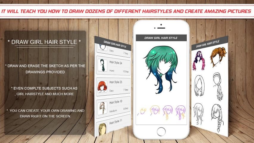 Belajar menggambar Gadis Gaya rambut akan mengajarkan Anda cara menggambar puluhan berbeda Gadis Gaya rambut dan menciptakan gambar yang menakjubkan.