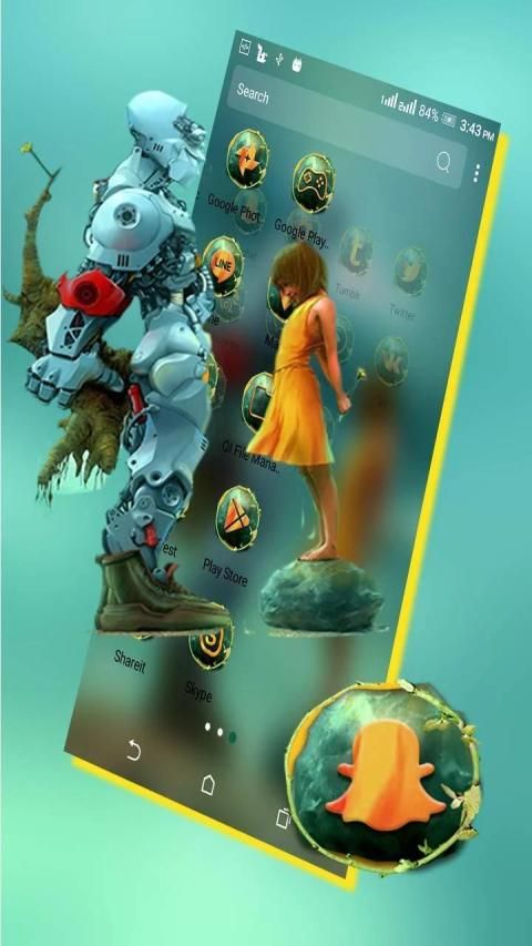 • Girl Robot Lover Theme included many HD customized Icons of popular apps, social app like (Snapchat,imo,viber,twitter etc) System app icons.