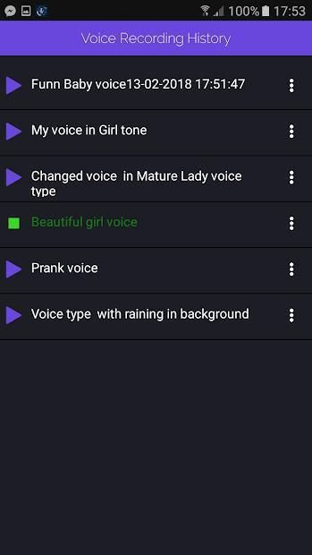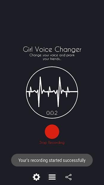 Merekam suara Anda menggunakan Gadis Voice Changer dan mendengarkan sendiri bagaimana Anda terdengar suara perempuan.