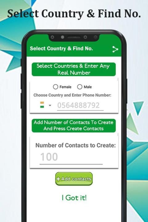 - Cara cepat dan mudah untuk menghasilkan kontak telepon acak.