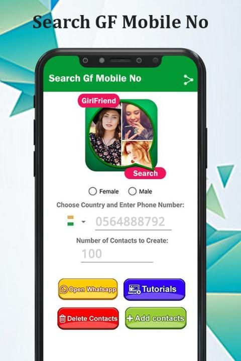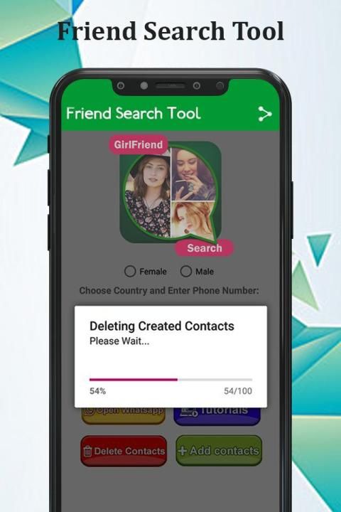 Friend Search For WhatsApp : GirlFriend Search App is simple tool to generate random Contacts phone to find a boy friend or girl friend on WhatsApp application And Other Chat Apps!