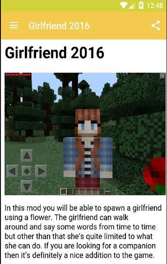 Girlfriend MOD For MCPE. With this mod, you will be able to get a girl using flowers and some supporters can speak, but in addition, she is quite limited concerning how she's doing. If you are looking intended for, then it definitely lost. Beyond the best in the game.