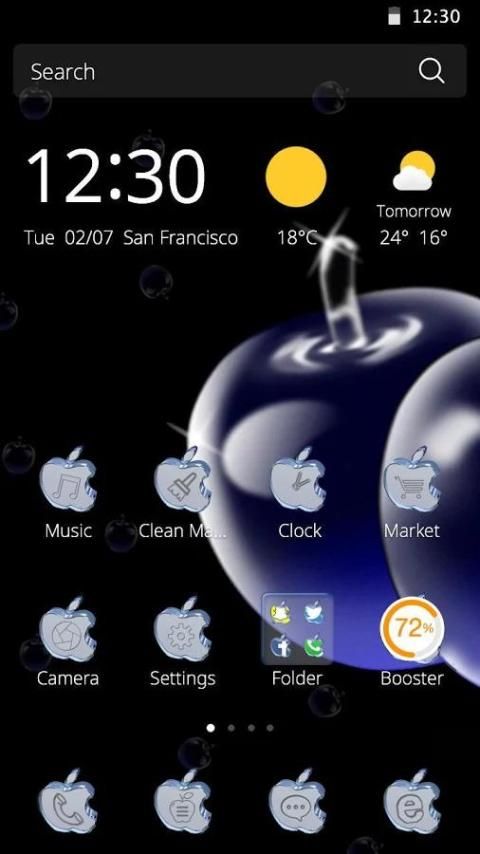 Glass apple is a free theme specially designed for CM Launcher users, including dozens of unified icons and artistic wallpapers, which can personalize your device easily.
