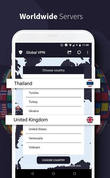 Global VPN built a global VPN network included America Europe and Asia, Africa and more. All servers are free to use, you can click the flag and change server as any times as you want, nothing better then this, and it's all FREE!