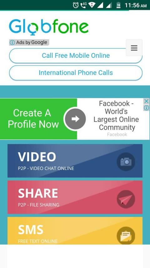 Globfone adalah ponsel GRATIS online yang memungkinkan Anda untuk: menghubungi telepon, mengirim SMS gratis, file sharing P2P, video chat, mengirim pesan teks. Tidak ada pendaftaran dan trik!