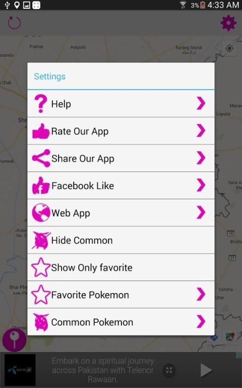 Aplikasi ini memungkinkan untuk tag ditemukan Pokemons pada peta dan pada saat yang sama untuk menggunakan lokasi rakasa yang diajukan oleh pengguna lain.