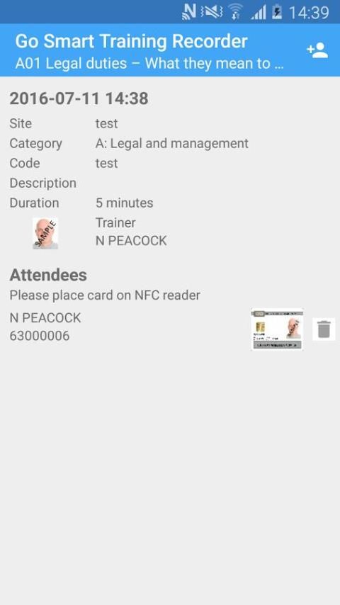Cukup gunakan smartphone atau tablet untuk merekam acara pelatihan dan kemudian menambahkan informasi trainer dengan memegang smartcard mereka ke belakang perangkat Anda. Setelah pelatihan telah selesai, terus smartcard para peserta 'ke belakang perangkat Anda untuk segera membuat catatan pelatihan digital. Sebuah file csv kemudian dapat dibuat untuk distribusi mudah.