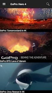 Get the gopro hero app and get access to best gopro videos like GoPro Awards , GoPro for a Cause , Gopro Top Picks , Staffs Top Picks , GoPro Travel , Gopro Animals and many much more that should select from the navigation drawer or you can also search of forite go pro video ...