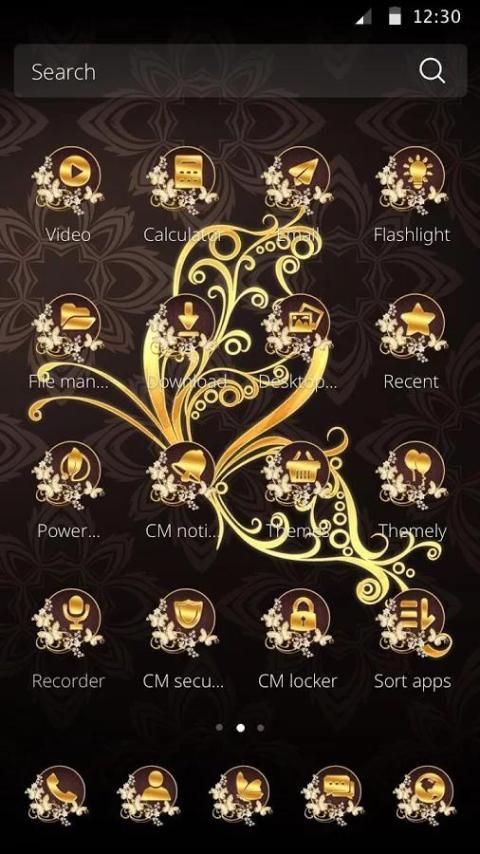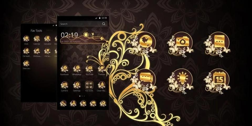 Personalisasikan ponsel cerdas Anda dengan tema CM Launcher Emas kupu-kupu!