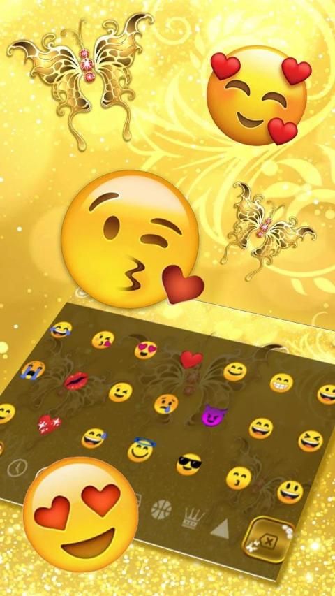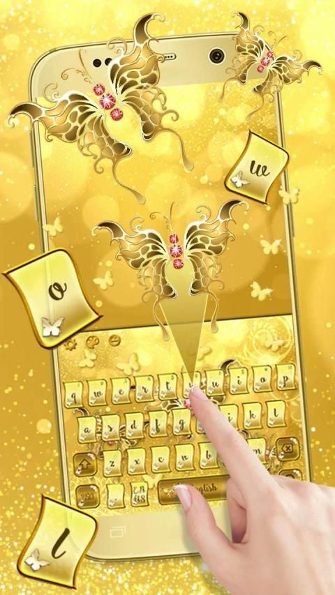 Tema Mengesankan Ini Akan Meningkatkan Kinerja Perangkat Anda Dan Fitur-fiturnya Akan Membuat Anda Jatuh Cinta Dengan Tema Emas Glitter Butterfly Keyboard.