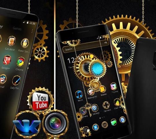 You are most welcome dear users! You can apply Golden Machine Launcher Theme free for you. Great black wallpaper, golden machine image and golden machine icons for the best combination for your theme.