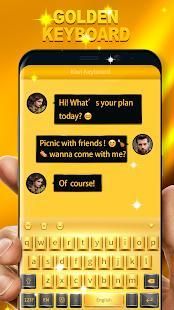Keyboard themes golden has different background themes, unique keyboard Emojis, stickers, emoticons.