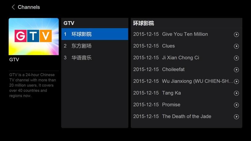 GoLive TV menawarkan pemirsanya acara TV online yang sangat baik dari Cina. Produk-produknya telah penyiaran di seluruh dunia. GoLive TV menyajikan 80 Real-Time saluran TV dengan kualitas HD. Muncul dengan saluran TV Cina populer termasuk Hunan TV, Zhejiang TV, dll. Paket ini juga menyediakan 5 saluran bahasa asing untuk khalayak berbahasa Non-China.
