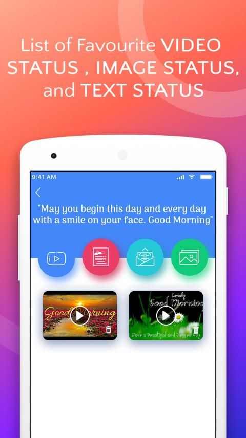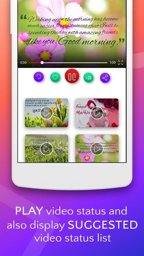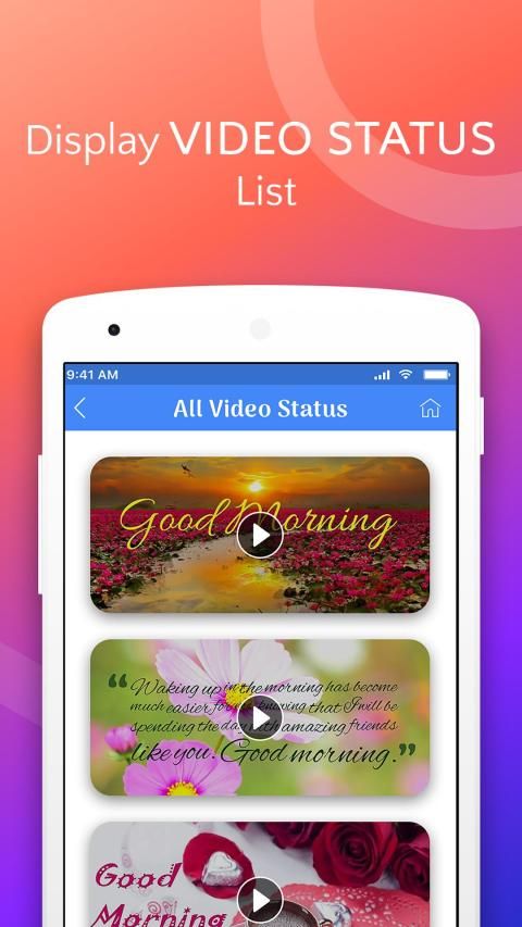 Good Morning Video Status app provide variety of short videos,Sad video song status help to direct put video status on social meadia. you can easily downalod and share video on social apps. one of the best app for Video Songs Status Status and video quotes.
