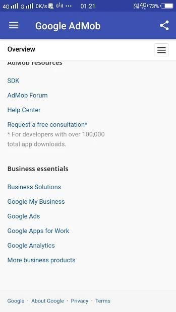 Aplikasi Google AdMob menyediakan cara mudah untuk melihat data kunci dari akun AdMob Anda. Ini memungkinkan Anda mengakses fitur pelaporan di mana saja, langsung dari perangkat seluler Anda. Aplikasi ini memberi Anda ikhtisar akun, serta akses ke laporan kinerja terperinci tentang semua metrik utama. Laporan yang tersedia meliputi: unit iklan teratas, saluran, situs, negara, dan banyak lagi. Laporan penghasilan akun juga dapat diakses melalui widget yang dapat diubah ukurannya.