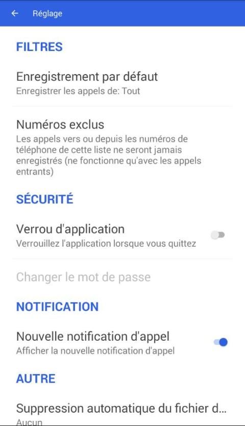• Filter rekaman. Anda dapat memilih antara merekam semua panggilan, hanya panggilan yang dilakukan dengan kontak Anda atau panggilan dengan nomor yang tidak dikenal. Bahkan dimungkinkan untuk memilih kontak mana dari daftar kontak Anda yang akan direkam atau diabaikan.