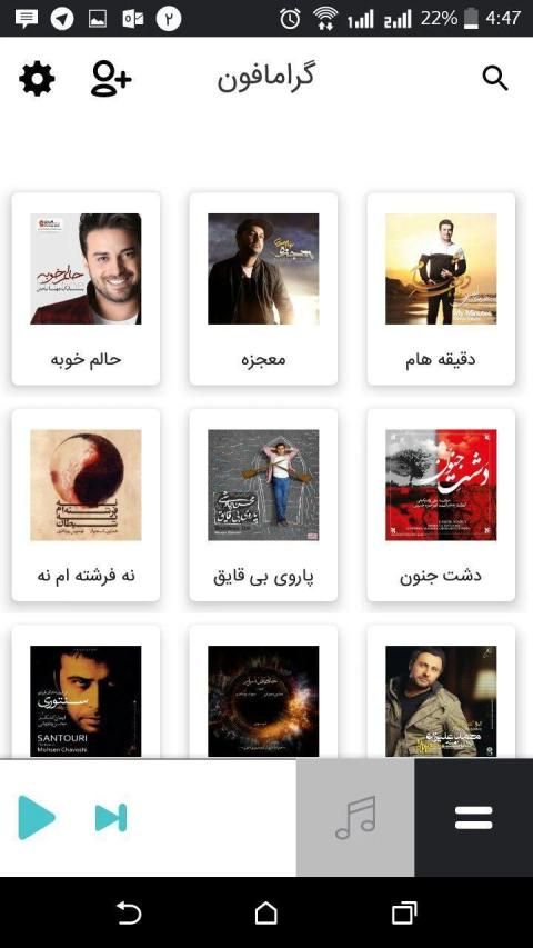 The Gramophone app is a service for Android smartphones with around 2,000 albums featuring more than 24,000 songs and Iranian albums. The program provides the possibility to broadcast Iranian-made online music featuring a large number of popular albums and songs. It allows the user to randomly stream music from popular songs to the user, while the user can select from the popular albums or new albums, download and download the content, and if desired within the app.