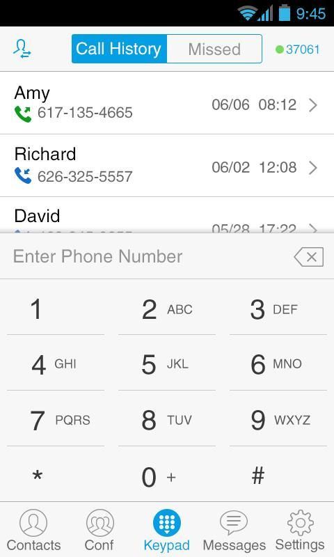 • Users can view info of Incoming & Outgoing calls and missed calls in call history
