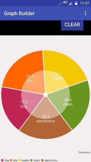 Aplikasi ini mencakup berbagai jenis diagram seperti diagram lingkaran, bagan pencar, diagram batang bersama dengan aktivitas grafik kreatif untuk membuat grafik pada data yang diberikan pengguna. Dalam aplikasi ini pengguna dapat memberikan datanya dan mendapatkan berbagai grafik dan grafik dari data tersebut.