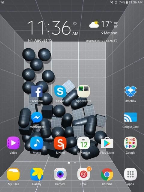 Gravity Live Wallpaper is a virtual box containing various set of objects. Shake, turn, move your phone to animate them. They're all affected by the gravity and react to your phone or tablet's orientation. You can even drag them around and mess them all up! Very cool background.