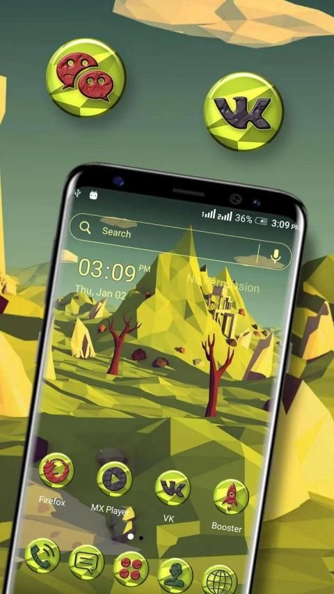 It has to be noticed that 20,000+ users downloaded Green Art Polygon Theme Launcher latest version on 9Apps for free every week! The app can be the quickest one to play if you get used to it. This hot app was released on 2020-01-07. You can quickly get it from 9Apps!