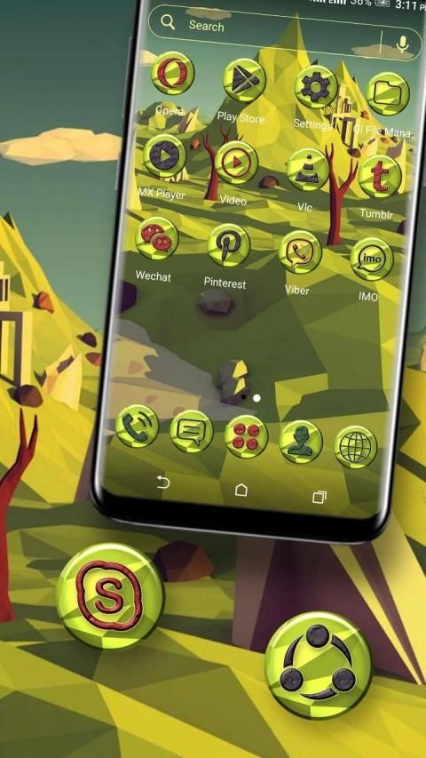 Datang dan unduh Tema Peluncur Poligon Seni Hijau Gratis ini. Peluncur ini diuji di semua perangkat seperti sony, Samsung, Huawei, HTC dll.