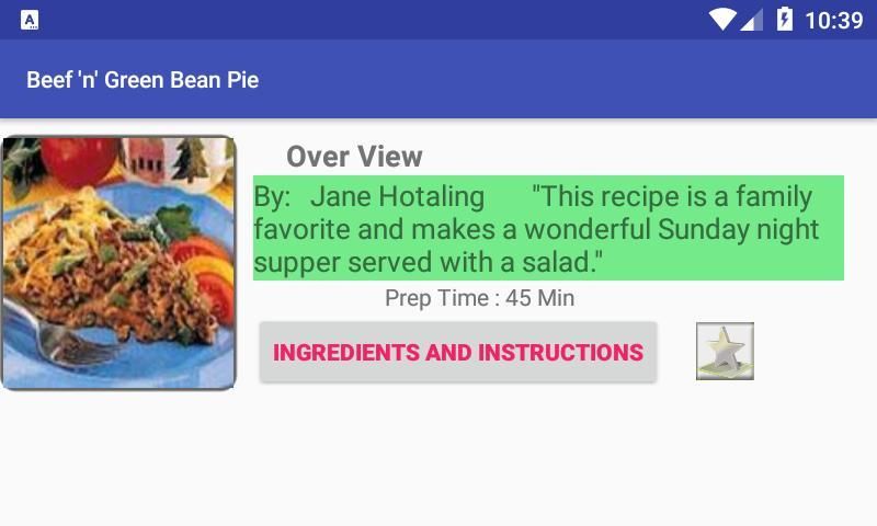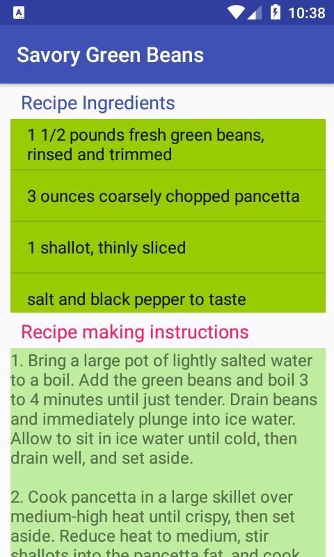 Pasang aplikasi Green Bean Resep gratis di ponsel android Anda dan melihat makanan yang ingin Anda mempersiapkan untuk diri sendiri atau untuk teman dan keluarga. Klik pada resep Anda akan melihat gambaran dari resep ini. Sekarang klik pada petunjuk untuk melihat pembuatan instruksi dan bahan-bahan dari resep itu. Baca petunjuk ini dengan seksama. Sekarang mendapatkan bahan-bahan dan membuat resep sesuai petunjuk. Kami menempatkan bahan-bahan resep dan petunjuk resep pada halaman yang sama untuk membuat resep mudah bagi Anda. Sekarang tekan tombol kembali ponsel Anda, Anda akan kembali ke gambaran resep itu lagi dan jika Anda suka untuk favorit resep ini kemudian klik pada bintang resep akan bergerak ke daftar favorit Anda. Bila Anda ingin menghapus resep dari daftar resep favorit kemudian pergi ke daftar resep favorit dan klik pada resep yang membawa Anda ke halaman ikhtisar jadi klik pada bintang resep akan dihapus dari daftar resep favorit. Dan jika Anda ingin memeriksa resep lain kemudian kembali dengan mengklik tombol kembali ponsel pintar Anda. Anda akan mendapatkan halaman pertama dari aplikasi Green Bean Resep. Sekarang periksa resep lain dari aplikasi dan pilih resep yang Anda inginkan. Membuat resep dan menikmati hal-hal tersebut. Catatan jika Anda suka aplikasi Green Bean Resep kemudian memberikan umpan balik dalam bentuk bintang dan review dan jika Anda tidak maka silakan berikan komentar Anda ke email "niaztoali@gmail.com" untuk membuat aplikasi yang lebih baik dengan bantuan Anda. Terima kasih atas waktu dan komentar yang berguna.
