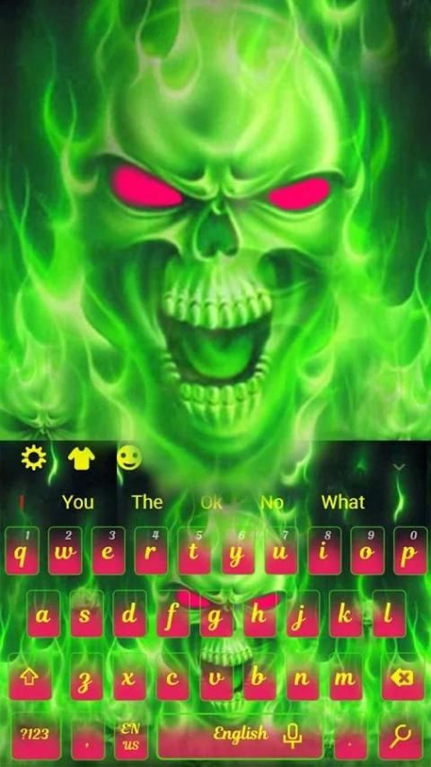 A(z) Tengkorak api hijau billentyűzet téma több mint 80 nyelvet támogat.