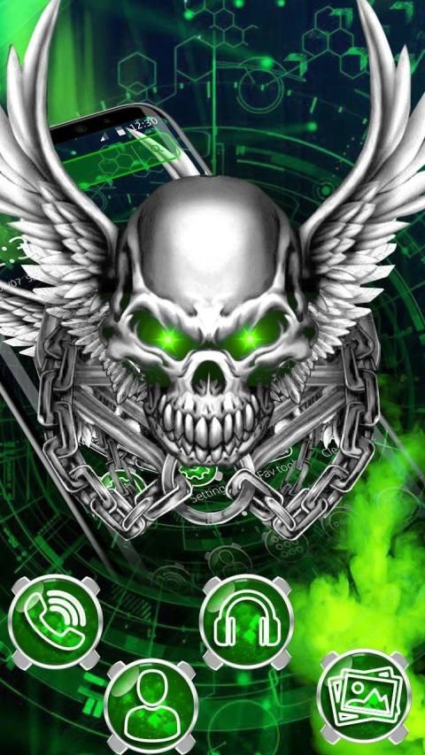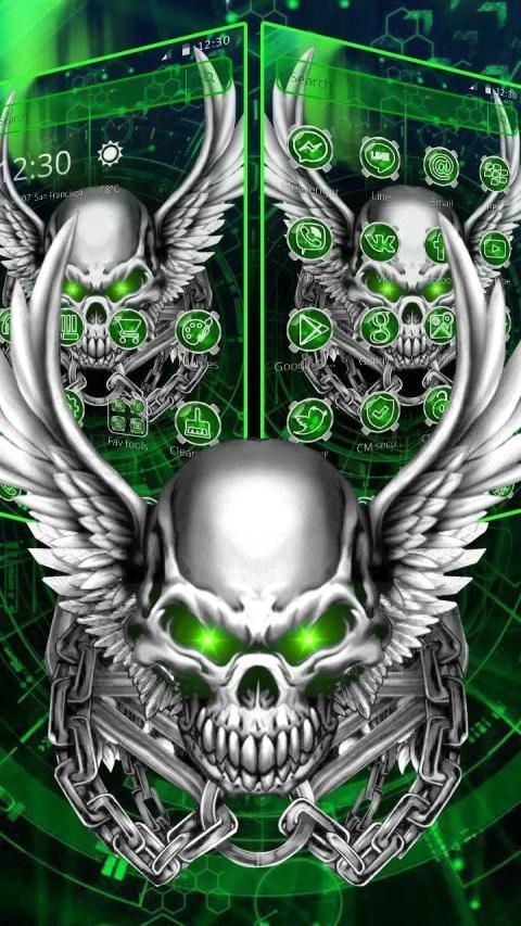 New Look - Try Green Metallic Skull Theme to give new look to your android phone.
