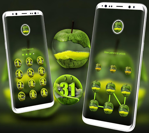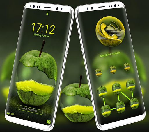 ☞ Tema Apple Hijau ini juga memiliki layar kunci untuk perlindungan ekstra denganGaya kunci yang indah untuk membuat ponsel Anda lebih indah