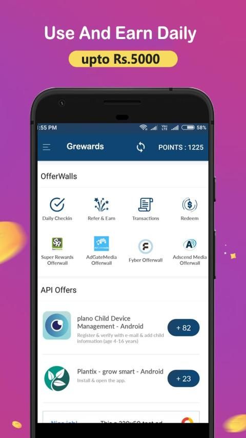 Grewards adalah App Produktif Terbaik yang juga menyediakan berbagai tugas dan penawaran untuk menghasilkan uang tanpa batas. Hasilkan Uang dengan Mendaftar, Check-in Harian, Putar untuk menang, Undang Teman, tugas Survei, dan instal tugas dinding penawaran dan banyak lagi. Aplikasi Penghasil Uang ini memberi Anda 100 poin saat mendaftar. Grewards adalah salah satu dari Aplikasi Penghasilan Uang Online teratas yang menghibur dengan 12+ kategori di mana Anda Menghasilkan Paytm Cash Harian, pubguc, pubg lite, kolam carrm, pool 8 bola, raja ludo, patti octro remaja.