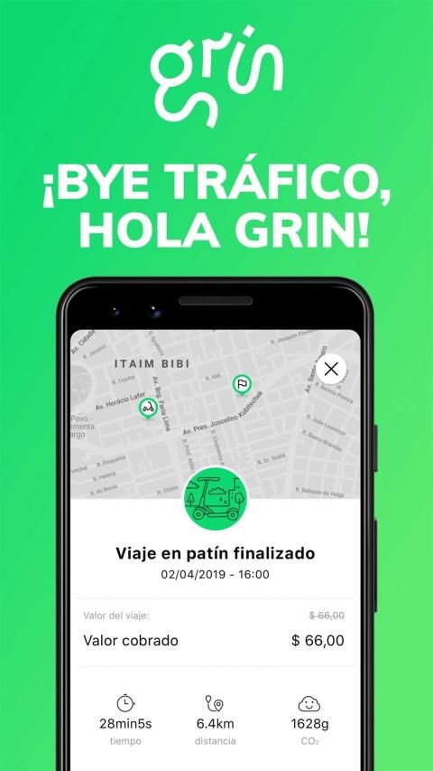 Compartiendo un patín eléctrico Grin usted huye del tránsito sin contaminar, sin hacer ruido y se divierte por el camino.