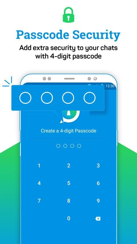 Aman mengamankan obrolan Aplikasi Obrolan Whats grup Anda dan junjung tinggi privasi menggunakan PIN. Yang terbaik adalah, pengguna dapat mengunci obrolan, dan aplikasi lengkap menggunakan PIN 4 digit.