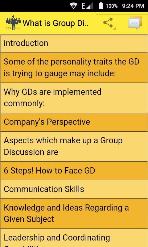 Kelompok diskusi! adalah sebuah konsep atau dalam bahasa sederhana Anda dapat menyebutnya proses wawancara atau kegiatan kelompok. itu digunakan sebagai salah satu alat terbaik untuk memilih calon kandidat dalam wawancara a. GD mungkin sangat berguna dalam wawancara atau sebuah organisasi, perguruan tinggi atau bahkan pada berbagai jenis competitions.hear manajemen adalah beberapa berbagai jenis topik GD diberikan kepada persiapan.