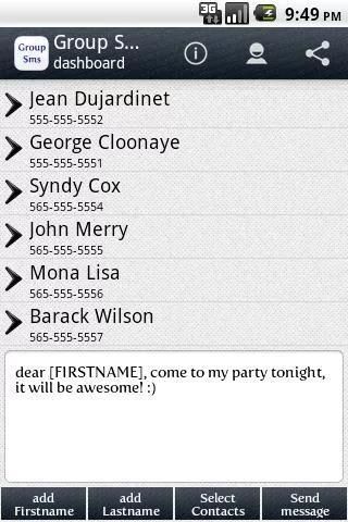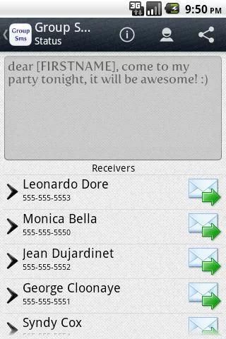 "Grup SMS" memungkinkan Anda untuk mengirim SMS pribadi untuk sekelompok orang.