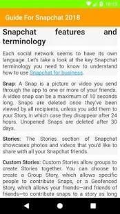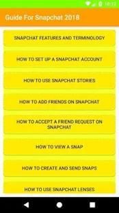 Recently, we found a very popular application. 20,000+ users downloaded Guide For Snapchat 2018 latest version on 9Apps for free every week! It shouldn't be surprising to find a app popular faithfully This hot app was released on 2018-07-13. Be sure that you check your current app before you start a run.