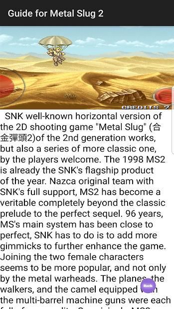 I'm glad to tell you that 20,000+ users downloaded Guide for Metal Slug 2 latest version on 9Apps for free every week! You'll found many people are using it. This hot app was released on 2018-08-26. You can see more apps release recently on 9Apps.
