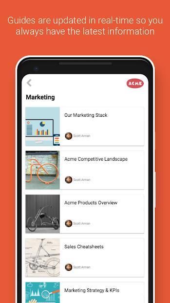 Bangun pustaka panduan yang dipersonalisasi - secara publik atau pribadi - untuk tim, mitra, pelanggan, dan pemangku kepentingan Anda. Memperbarui panduan dengan mudah secara waktu nyata dan memberi tahu orang yang tepat ketika peraturan, proses, dan perubahan informasi. Manfaatkan praktik terbaik industri dan berkolaborasi di seluruh organisasi dengan berbagi pengetahuan praktis yang membantu organisasi Anda berkembang dengan tetap mendapat informasi, mempelajari keterampilan baru, dan menerapkannya di mana saja.
