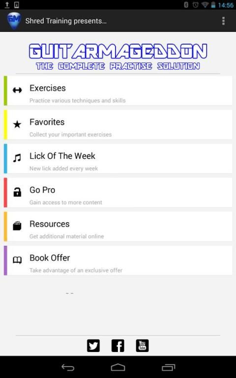 Gunakan Guitarmageddon untuk pemanasan, belajar skala / akord / arpeggio, menjilat praktek dan mengembangkan teknik. Atau favorit pilihan latihan / menjilat dan menciptakan sendiri pribadi praktek rutin Anda, alat luar biasa kuat.
