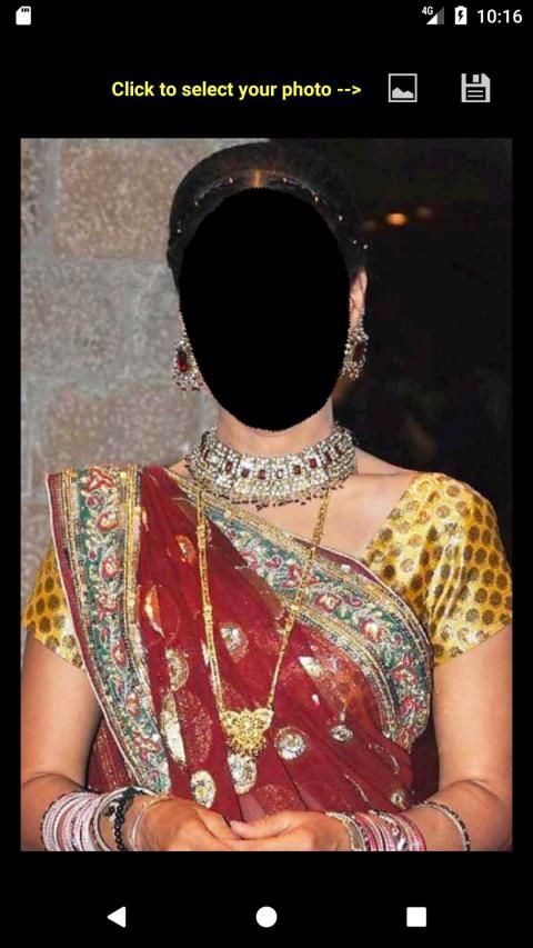 Pilih gaun Gujarati, pilih foto Anda dari galeri, menyesuaikan wajah Anda dan simpan. Selesai!