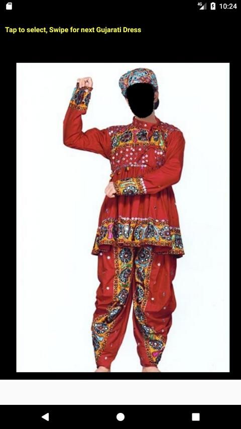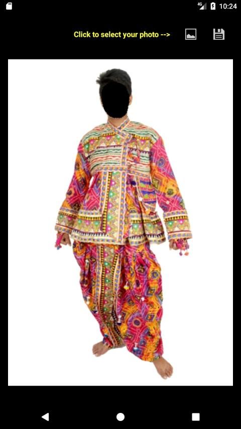 Select a Gujarati dress, select your photo from gallery, adjust your face and save. Done!