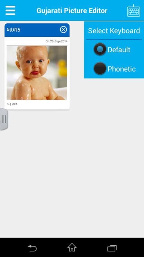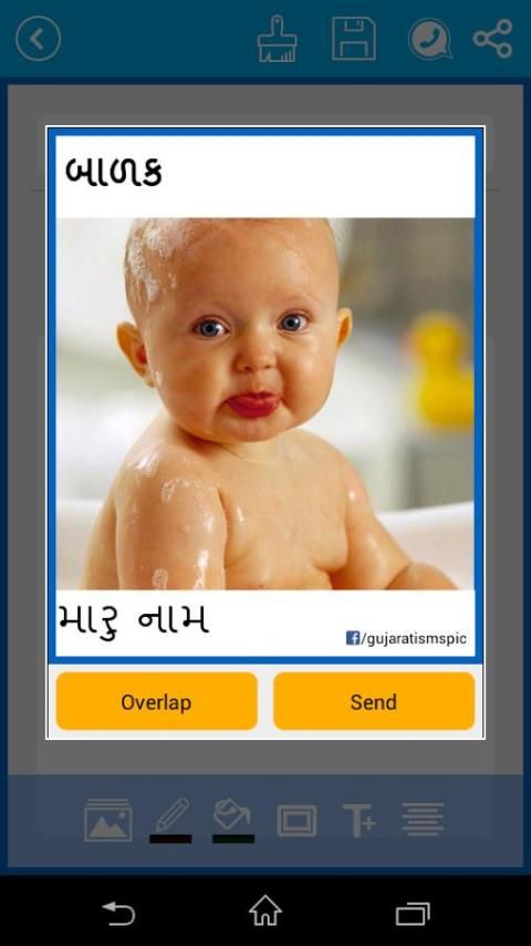 Gujarati Picture Editor adalah sebuah aplikasi dalam bahwa Anda dapat menulis pesan di Gujarat, Inggris dan mengirim pesan sebagai gambar ke teman Anda melalui jaringan sosial, ini akan menjadi seperti Gujarati Editor