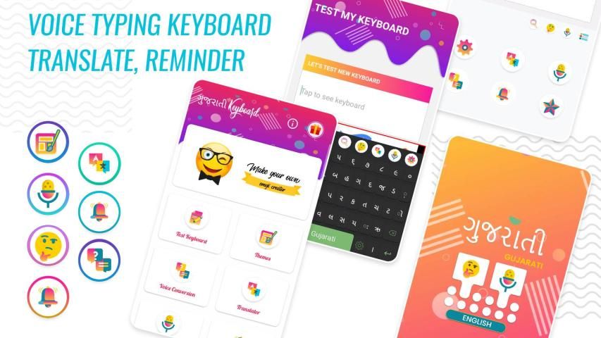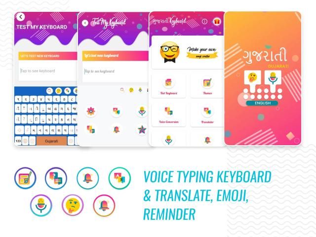 English and Gujarati Voice Typing Keyboard - English to Gujarati helps you to fast typing words by your voice Easy to communicate Text and Voice