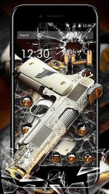 Notice: The Gun Broken Glass Screen Military Gravity Theme is available for phones with our launcher installed.