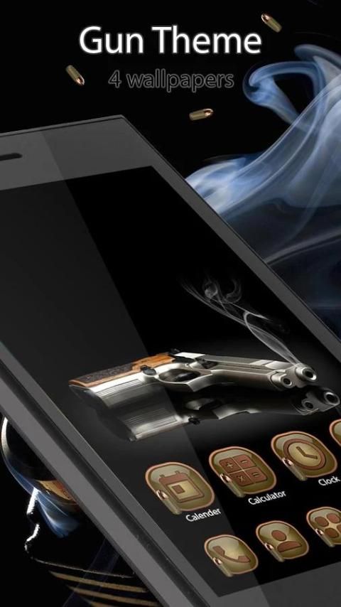 Gun Senjata Tema dirancang khusus untuk para penggemar game first person shooter. Jika Anda ingin menggunakan senjata api di dunia maya Anda akan menyukai kulit launcher keren ini. Apa yang Anda akan mendapatkan atau tema peluncur? Empat wallpaper menakjubkan dengan senjata. Setiap senjata memiliki warna perak atau chrome laras pistol. Ini akan terlihat luar biasa pada layar rumah Anda. Khusus untuk Anda kami telah merancang lebih dari 40 ikon kustom di kulit kamuflase militer dengan peluru di sudut.
